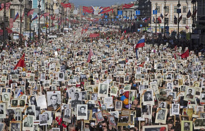 Trzeba to osobiście przeżyć, by zrozumieć. Na portretach maszerował ponad milionowy tłum ludzi, którzy zostali zachowani w pamięci potomnych, jako niezapomniani bohaterowie świętowanego zwycięstwa nad ludobójczym nazizmem, nad III Rzeszą Niemiecką. W każdej rodzinie mieszkańców Rosji są tacy bohaterowie - niezapomniani, czczeni, wspominani.